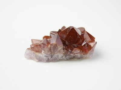 大小約20個のアメシストクラスターで。最大の結晶は直径20mmです。結晶の表面は明るい赤褐色で斑点は見られません。