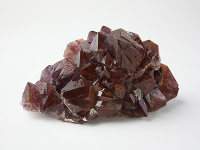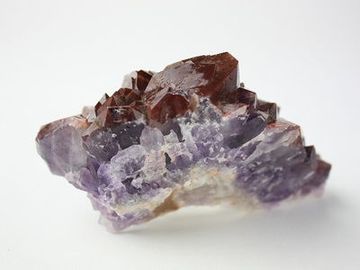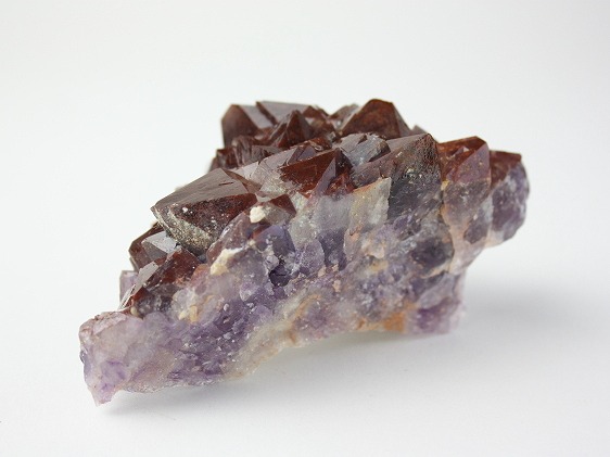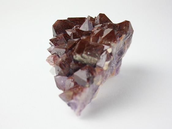 どれも大きな結晶で最大は30mmです。赤い表面ですが内部は紫色です。光にかざし結晶を側面から見ると内部は透明な紫色をしています。赤いアメシストの成因はアメシスト鉱山 訪問記に載せています。