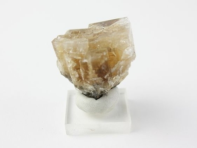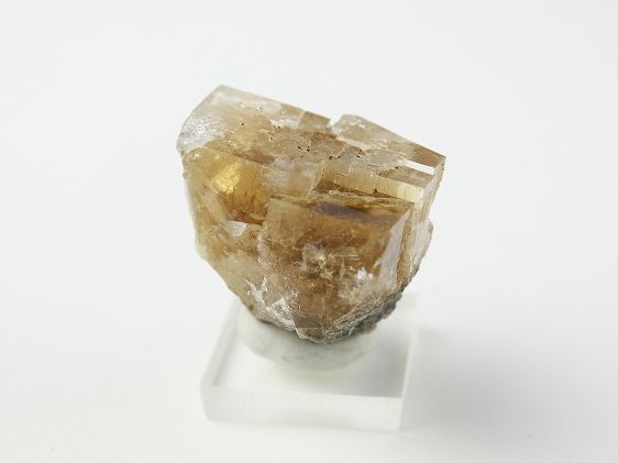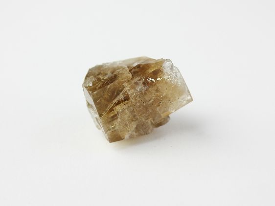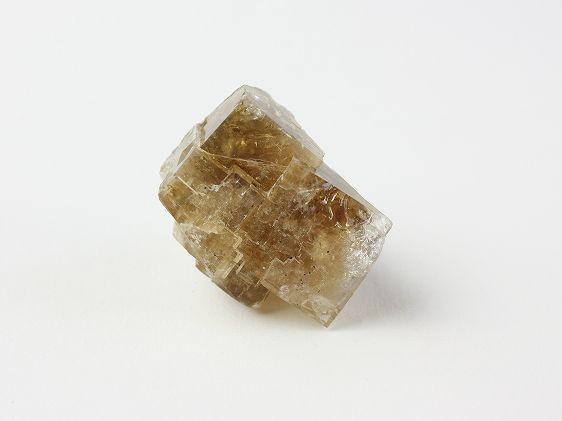 13mmと16mmの透明な蛍石が双晶になっています。ウイスキーのような色は炭化水素の内包物によるものです。