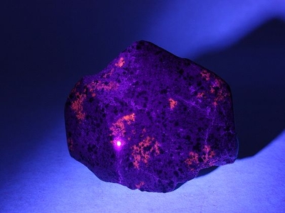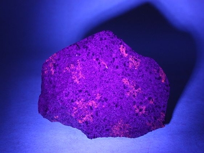 ユーパーライトは、コールドウエル・アルカリ複合岩体に含まれるハックマナイト(方ソーダ石)を含む閃長岩です。2017年にスペリオル湖周辺(ミシガン州アッパー半島)でエリック・リンタマキ氏によって発見されました。ユーパーライトのハックマナイト(方ソーダ石)の部分がブラックライトを当てるとオレンジ色に蛍光します。