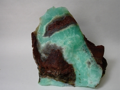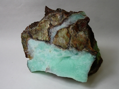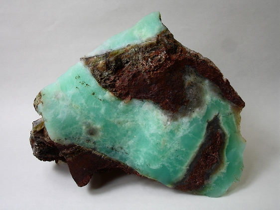クリソプレーズは、蛇紋石が風化しニッケル、シリカ、酸化鉄などが水に含まて、他の岩石の亀裂や隙間を埋めて出来た二次鉱物です。クリソプレーズ(Chrysoprase)の名の由来は、ギリシャ語のChryos Prason=Chryos(黄金の)、Prason(ネギ)です。