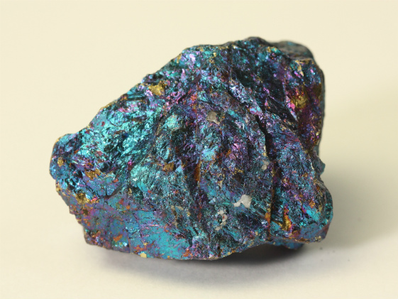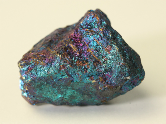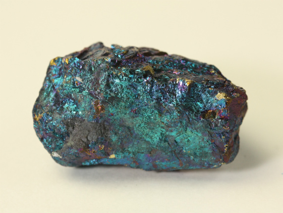 銅鉱床の酸化帯に二次鉱物として産出します。輝銅鉱、黄銅鉱、四面銅鉱と共生をしている場合があり、これらの鉱物と固溶体であることがわかります。新鮮な面は淡いブロンズ色ですが、時間が経つとともに紫がかった藍色になります。これは含まれている鉄と銅が酸化して変色するためです。