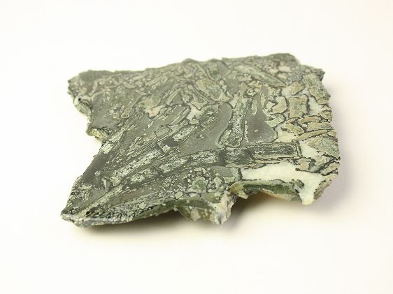 ダラサイトは枕状溶岩の隙間に生成される火山性の角礫岩(ブレッシア)です。高温のマグマが水中に噴出した際に急冷された破砕岩(ハイアロクラスタイト)の一種で、緑泥石、緑簾石、石英、炭酸塩鉱物などから固結した岩石です。